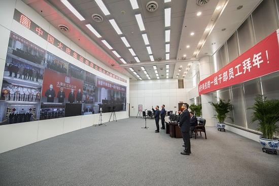 本网讯 1月31日农历除夕,在千家万户阖家团圆的重要时刻,快猫 集团有限公司党组书记、董事长邹磊和党组成员、副总经理曲波代表集团公司党组亲切看望慰问总部值班人员,并通过视频连线的形式慰问春节期间坚守岗位的一线干部员工,向大家致以新春的问候与诚挚的祝福。