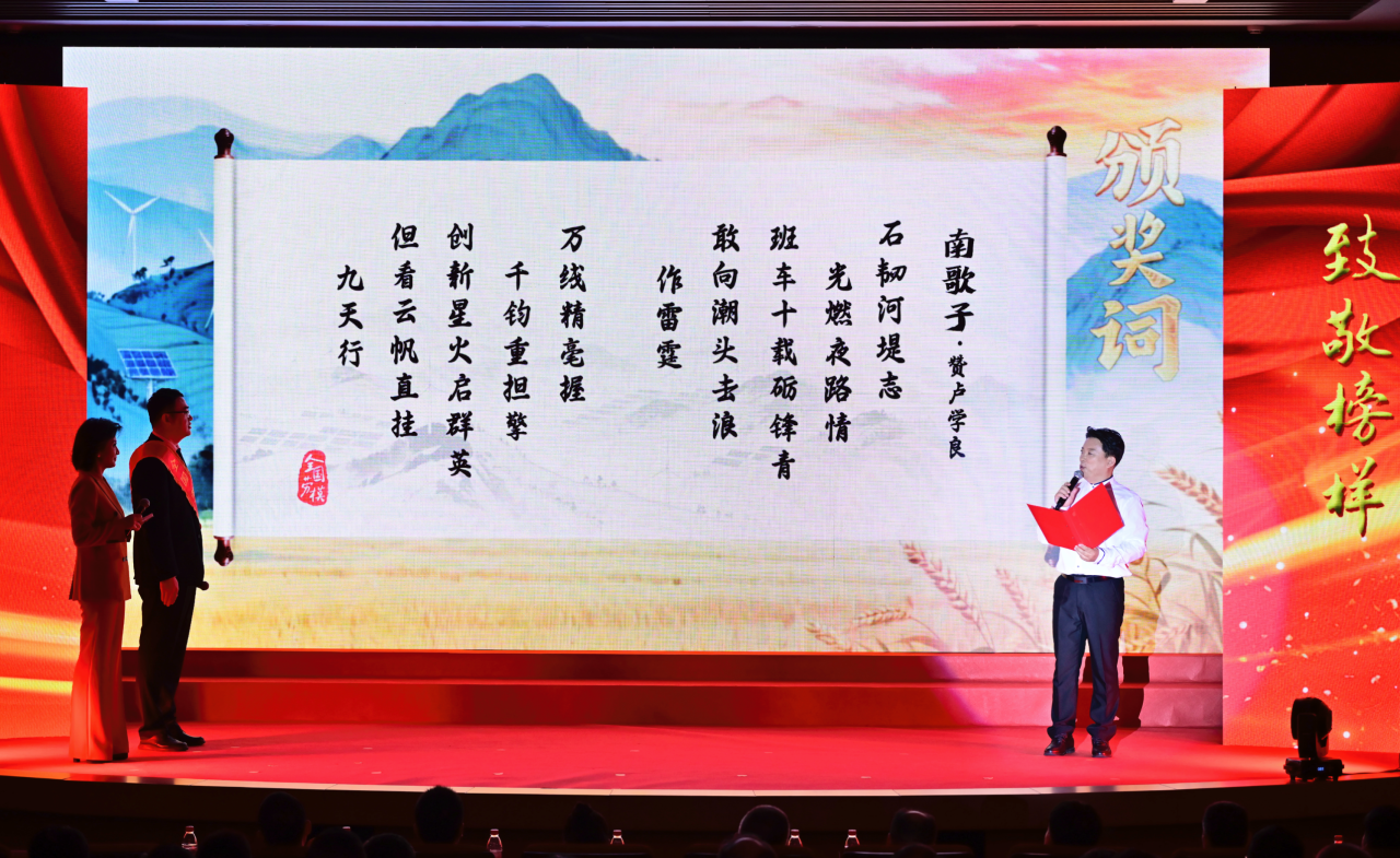 表彰宣讲会以“故事讲述+传统诗词颁奖词+现场采访”的创新形式,再现了“夜披星斗赴危时”的林志勇,“听脉转轮心”的刘丰,“千条管脉掌中量”的于克强,“发丝较劲、卡尺量星”的李永俊,“创新星火启群英”的卢学良,“焊花飞作杏林星”的孙开福,“U型管里画新程”的杨银娟等7位全国劳模的感人事迹,生动诠释了他们舍小家为大家、择一事钟一心的拼搏奉献精神,以及扎根一线、产业报国的赤子情怀和担当。