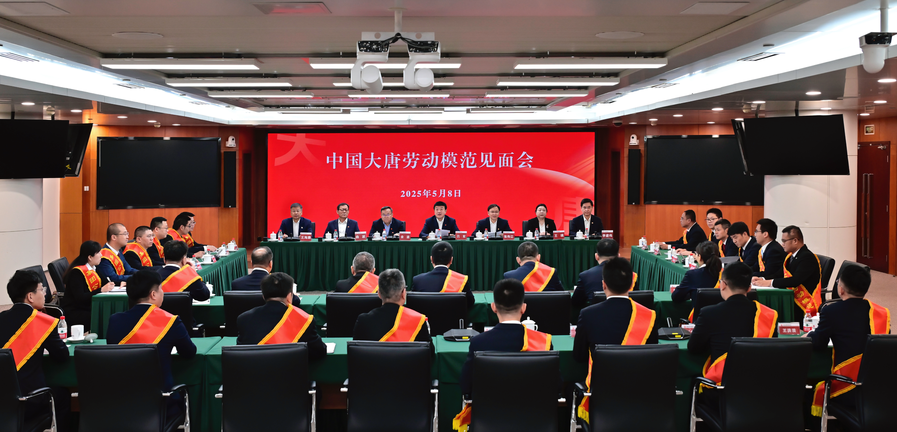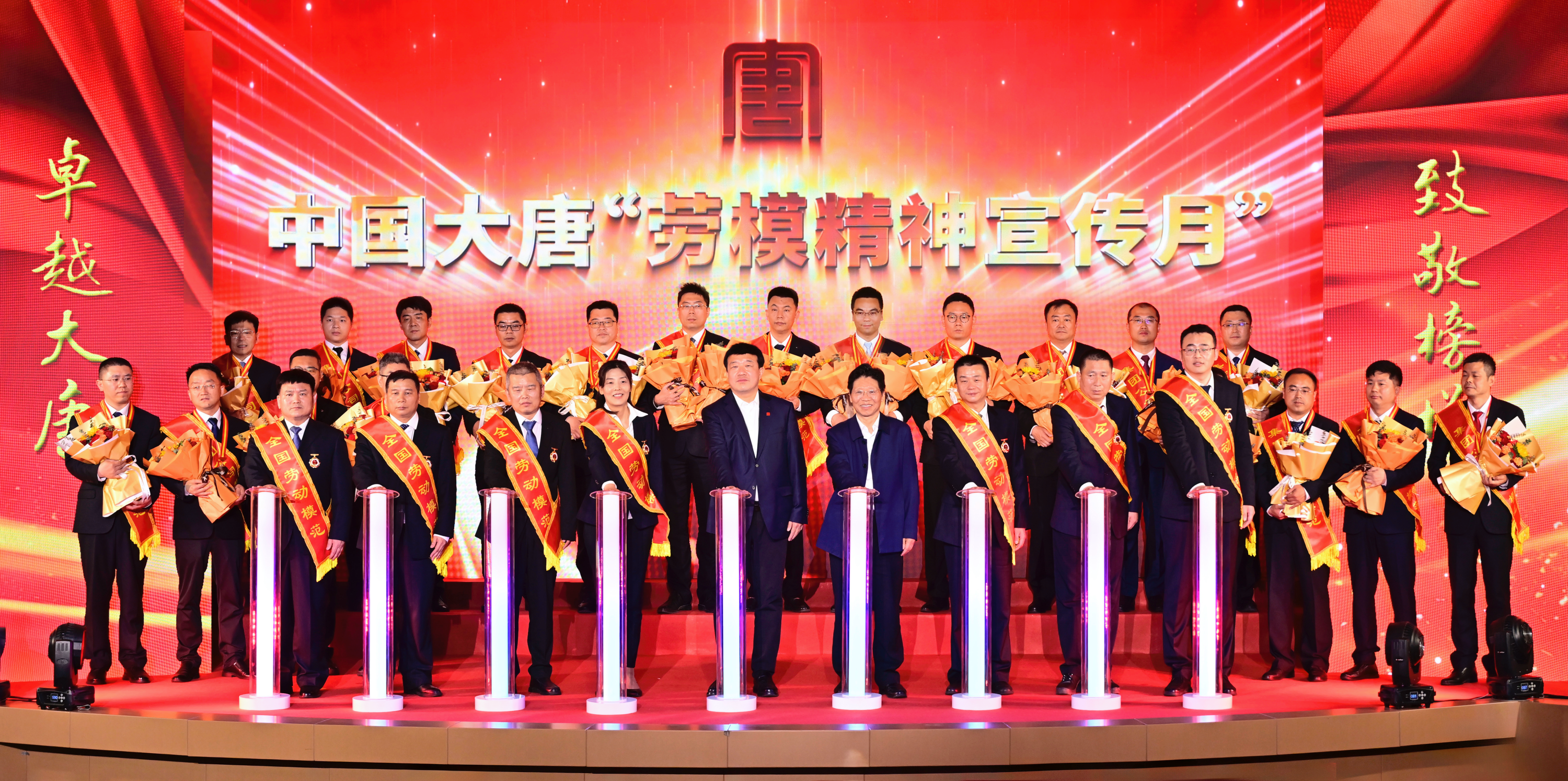 伴随着歌曲《咱们工人有力量》,蔡毅德、吕军与7位全国劳模共同启动集团公司2025年“劳模精神宣传月”。