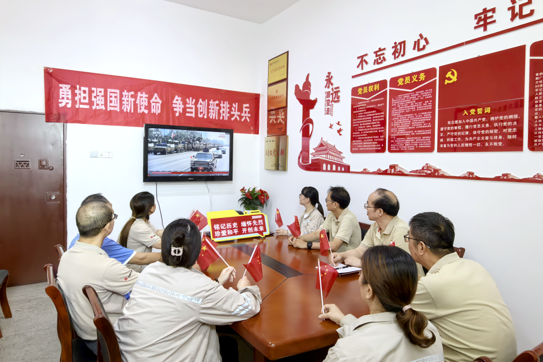 广东分公司1900多名党员干部职工观看九三阅兵直播。这场生动的爱国主义教育课激扬爱国情怀、凝聚奋斗力量。