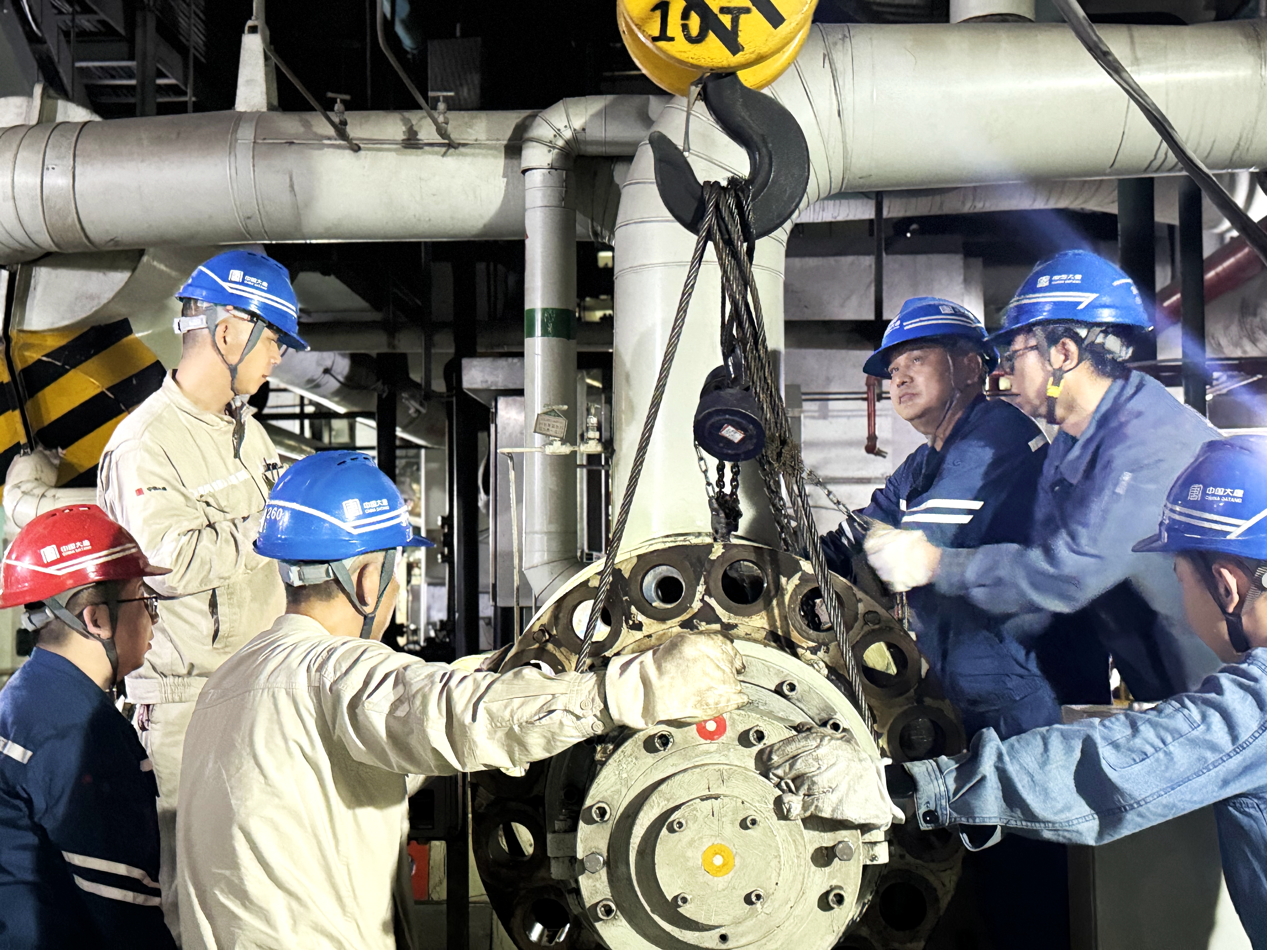 “快要抽出来了!”所有的人都放慢了呼吸,生怕一个大喘气影响芯包振动或倾斜。当芯包完全脱离泵体的瞬间,孙硕迅速装好孔洞封堵隔离板,以防杂物落入;韩雨放好支撑枕木,芯包平稳落至检修平台。