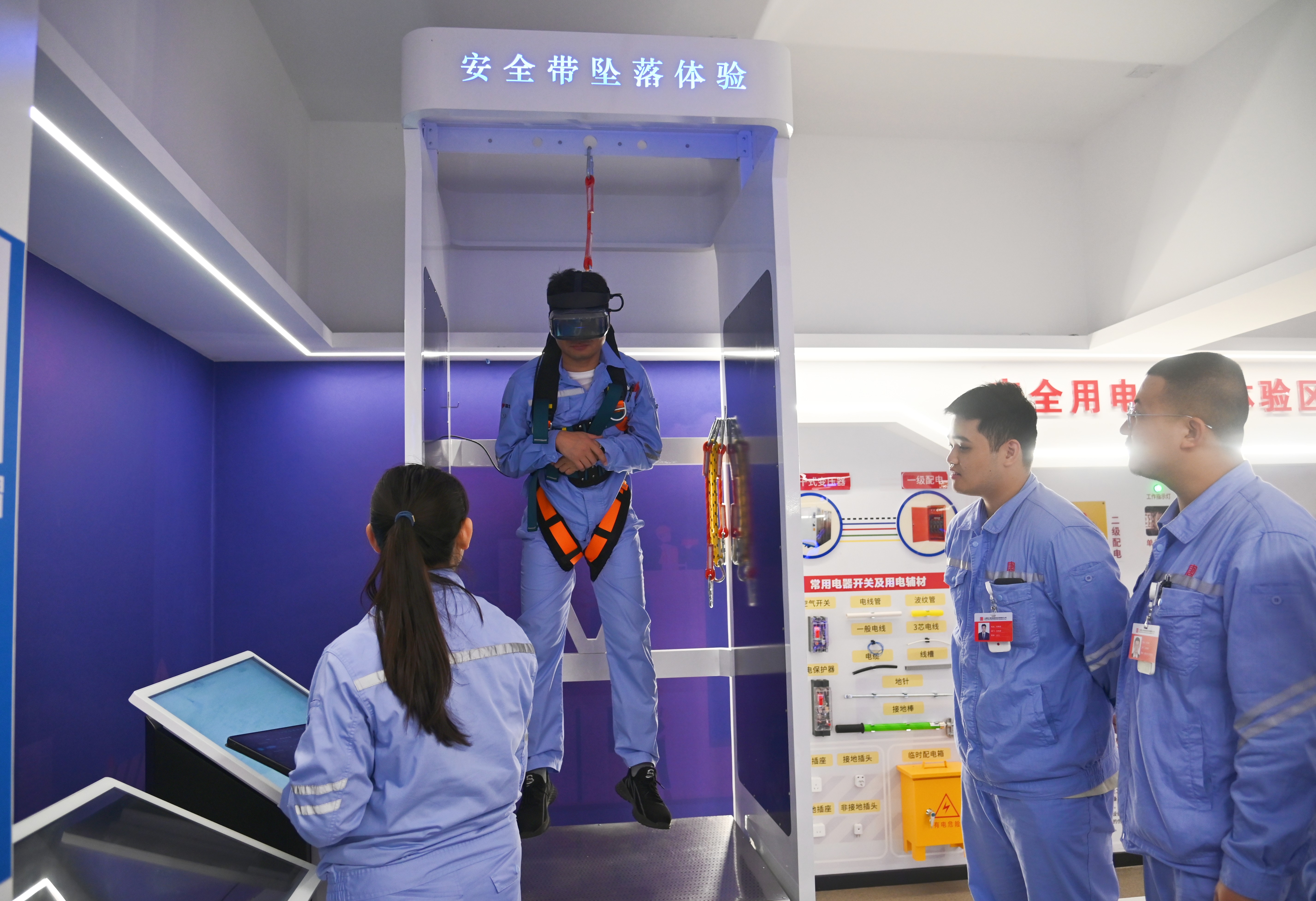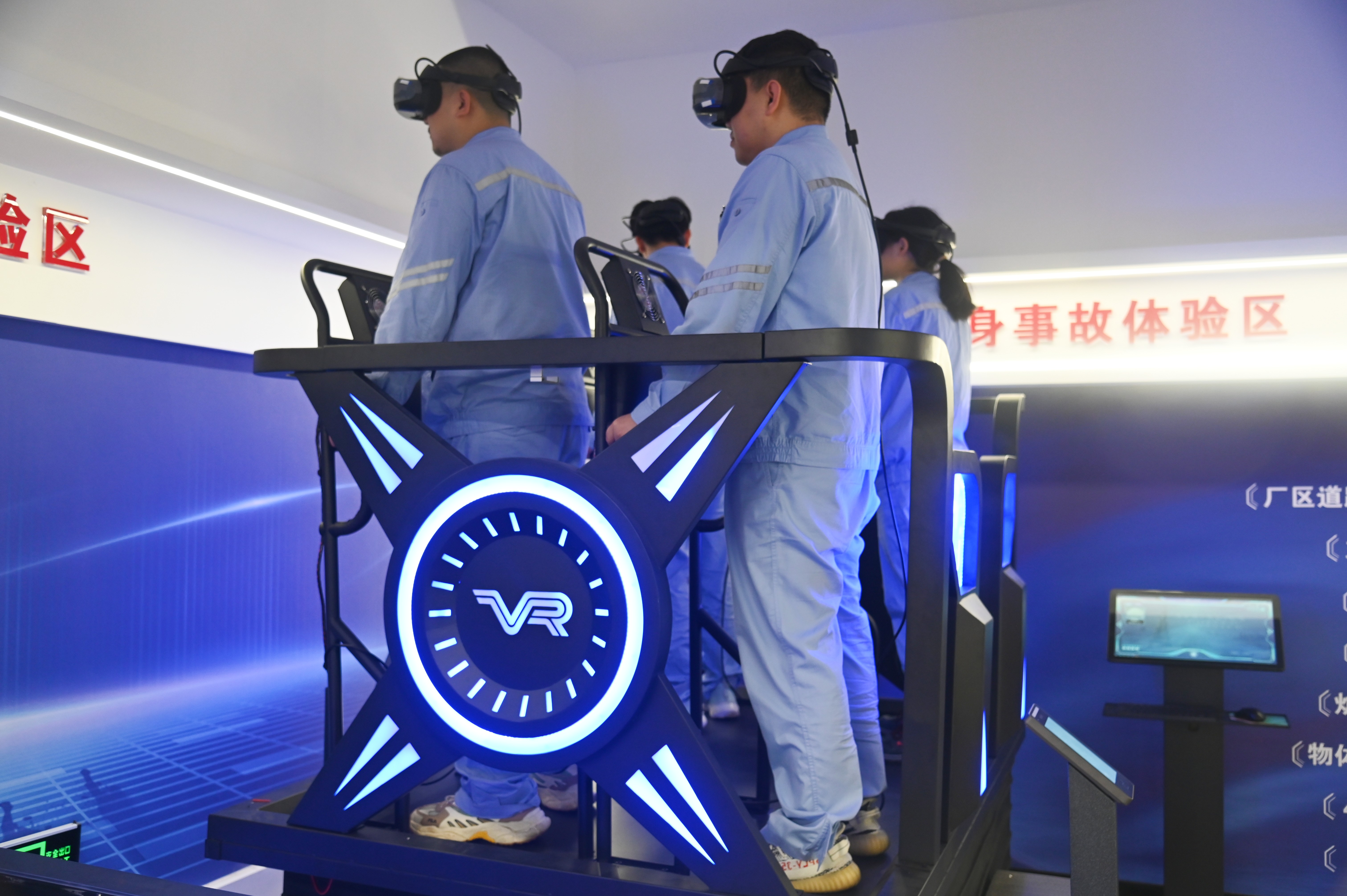 该中心设有人身事故体验区、作业风险防控与隐患排查体验区、有限空间作业实训体验区、人身触电体验区、安全防护用品体验区、应急演练区、急救培训区等9个区域,采用视、听、触相结合的三维立体式培训模式,融合虚拟现实和多媒体互动技术,模拟作业环境和事故场景。参训人员可以通过佩戴VR眼镜,手持操作手柄,站立于动感体验平台,对现场各类灾害事故进行“零距离”体验,提供可感受、可操作的实体化培训,有效推动安全培训从传统“说教式”向智能“沉浸式”转型,进一步深化和提升了安全管理水平,丰富了职工安全生产技能、应急处置能力培训“套餐”,助力本质安全型企业建设迈出重要一步。