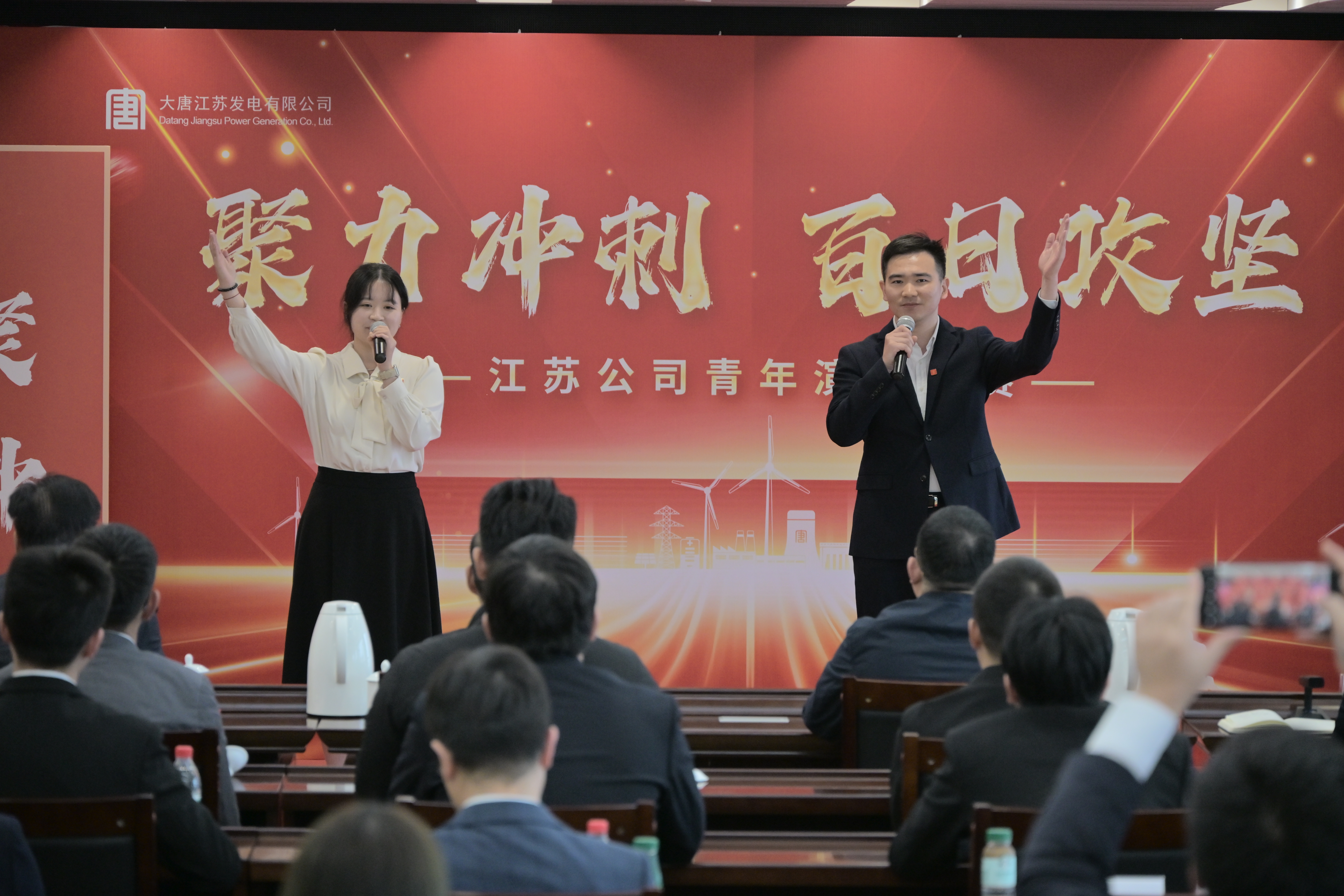 本网讯 近日,大唐江苏发电有限公司举办“聚力冲刺 百日攻坚”青年演讲比赛。来自江苏系统各单位共计12组参赛选手以饱满的热情和真挚的情感,讲述了在“百日攻坚”行动中涌现出的动人故事、感人瞬间和团队精神。