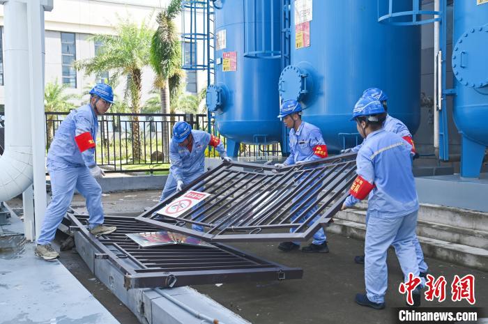 9月8日,海口,大唐海口公司在厂区内开展灾后设备设施修复工作 (大唐海南公司供图)