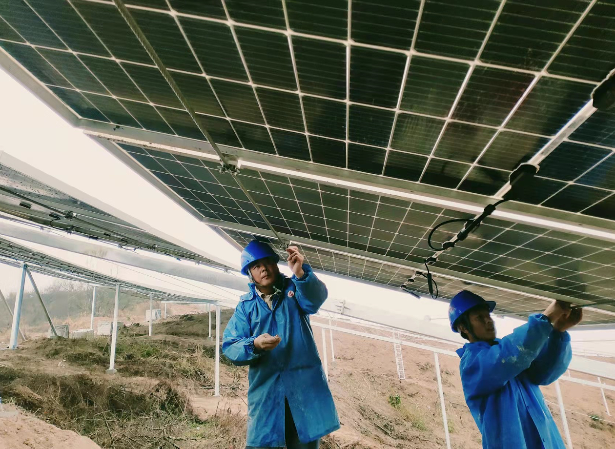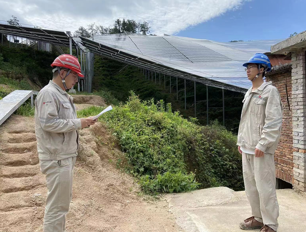 在冯刚带领下,项目部成员大胆假设,多方论证,决定使用柔性支架安装方式,为山地光伏建设提供新方案、新思路。
