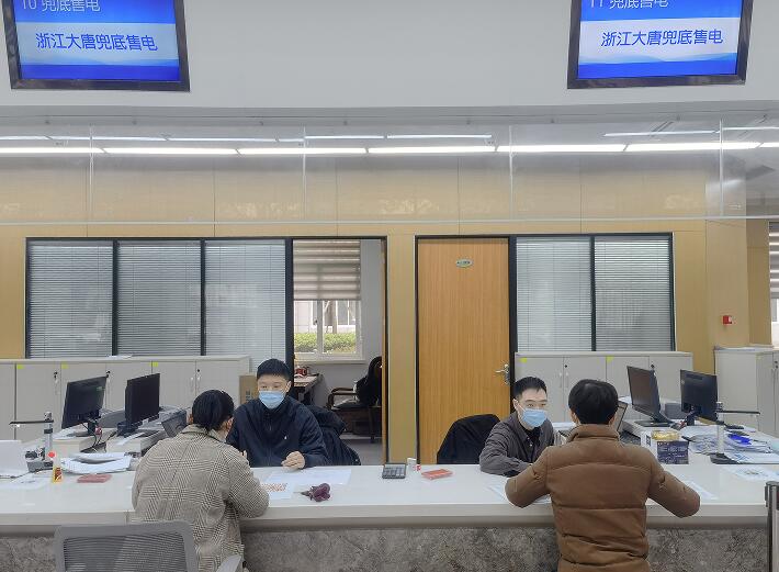 在绍兴市6个区、县行政服务中心16个服务窗口前都能看到大唐人的身影,他们充分利用办公现场的“排队叫号”“防疫隔离带”及“一米线间隔线”等设备、设施进行服务接待,把大唐人的温暖和热情送到了用户手中。
