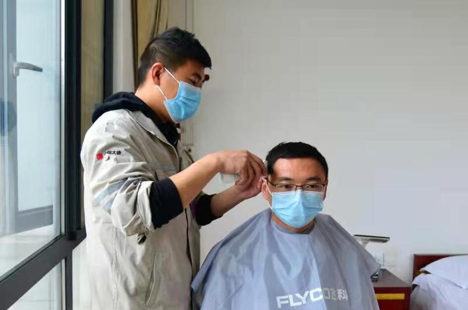 为坚守岗位的职工理发(付山/摄)
