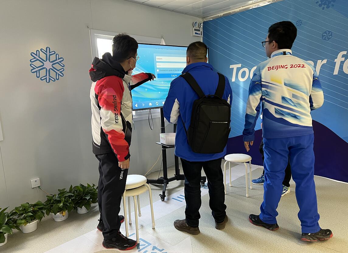 20日凌晨3点,韩泽华与联通、奇安信团队正在公共区7号安检口进行人证、车证系统网络调试。深冬夜里,阵阵刺骨的寒风在空阔的场馆区肆虐着。“只剩三天了,咱们加把劲干吧!”韩泽华和同事们相互打着气。经过连续几天不停歇的工作,技术团队终于按期完成全部配套网络的布置和调试,圆满完成场馆团队交派的各项任务。